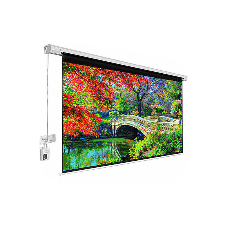 پرده نمایشهای برقی اسکوپ دارای یک موتور برقی قدرتمند و تقریبا بیصدا هستند که فرآیند باز و بسته کردن پرده را کنترل میکنند. پرده نمایش پروژکتور سقفی-برقی Scope مدل 3*4 برای نصب ثابت بر روی دیوار یا سقف گزینهی مناسبی است. در مواردی که سقف بلند است میتوان از زنجیر آویز استفاده کرد تا ارتفاع نصب مورد نظر را تعیین نمود. بعلاوه از آنجایی که کنترلگر سیستم باز و بسته شدن پرده نمایشهای برقی توسط موتور انجام میشود، استفاده از آنها در اتاقهایی با سقف کاذب بهتر و ایمنتر است. پرده نمایشهای دستی به خاطر فشاری که با باز و بسته کردن به مرور زمان متحمل میشوند، امکان کنده شدن آنها وجود دارد.